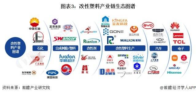目前,改性塑料的上游主要包括石油化工、合成树脂/塑料以及改性剂企业,其中上游石化企业主要包括中国石化、上海石化、华锦股份等;上游合成树脂/塑料企业主要包括永悦科技、华峰超纤、宏昌电子、佛塑科技、神剑股份等;上游改性剂企业包括利安隆、日科化学、皇马科技、瑞丰高材、晨化股份。改性塑料产业链中游主要包括金发科技、国恩股份、普利特、道恩股份、会通股份、同益股份、泉为科技、聚石化学、银禧科技、美联新材、沃特股份、南京聚隆、杰事杰等企业。