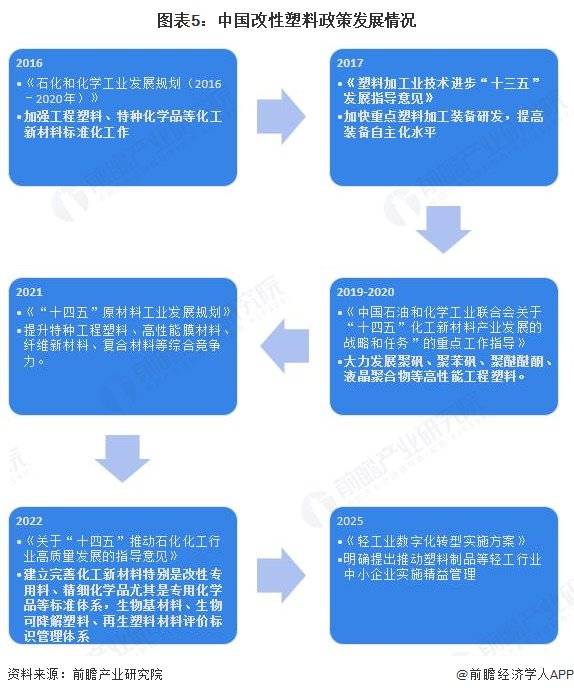 近年来,国家通过出台一系列政策扶持我国改性塑料行业的发展。2010年国务院发布《关于加快培育和发展战略性新兴产业的决定》,将以改性塑料为代表的高性能复合材料上升为国家战略高度。2018年《战略性新兴产业分类(2018)》中将改性塑料行业划分在需重点发展行业中。同时,一系列废塑料进出口限制政策、限塑令环保政策等,也利好我国改性塑料行业的发展。相关行业政策具体如下: